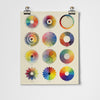 This captivating fine art print presents a curated grid of 12 vintage colour wheels, charting the evolution of colour theory from 1708 to 1923. Sourced from the work of influential colour theorists across more than two centuries, each wheel reflects a distinct perspective on how we perceive and organise colour.